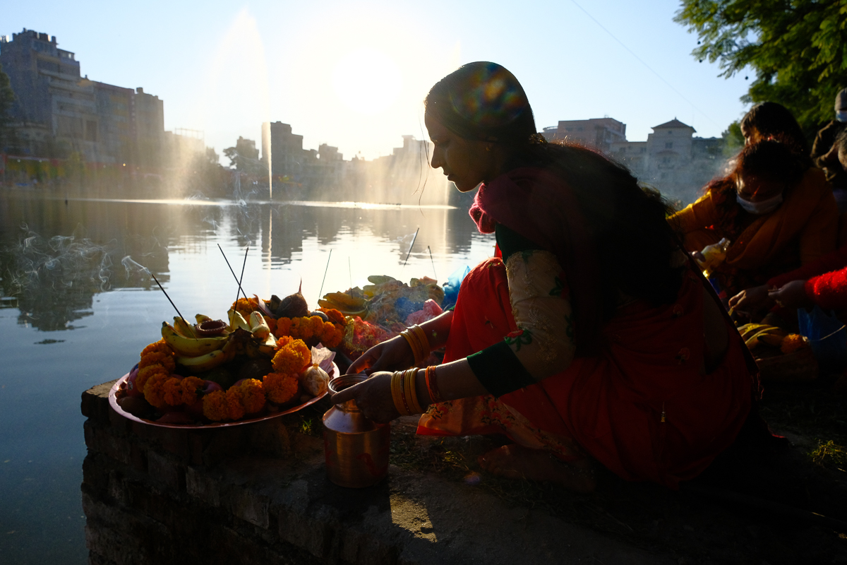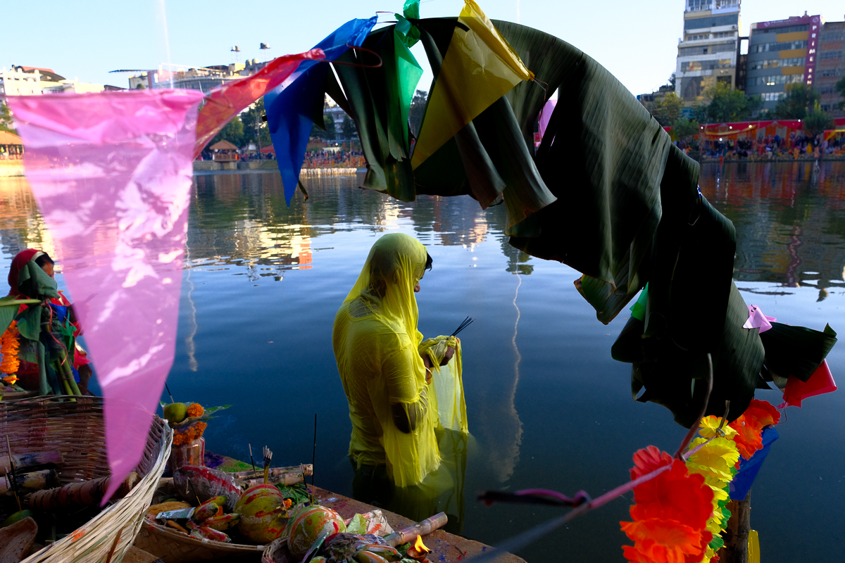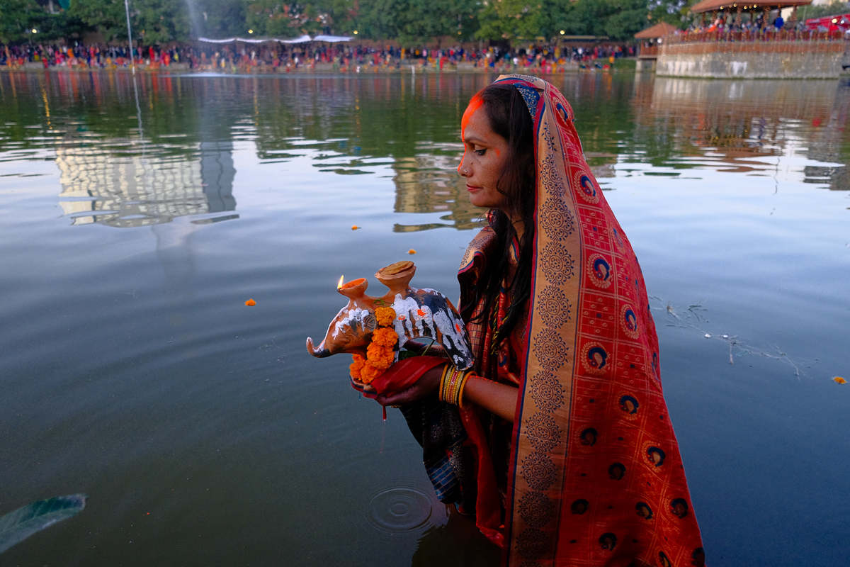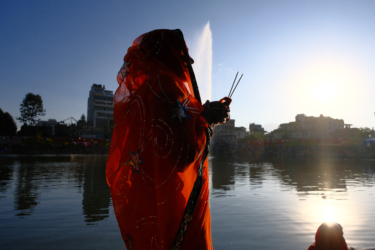 Devotees perform Chhath Puja in Kathmandu's Kamalpokhari. All photos: Simon Paudel