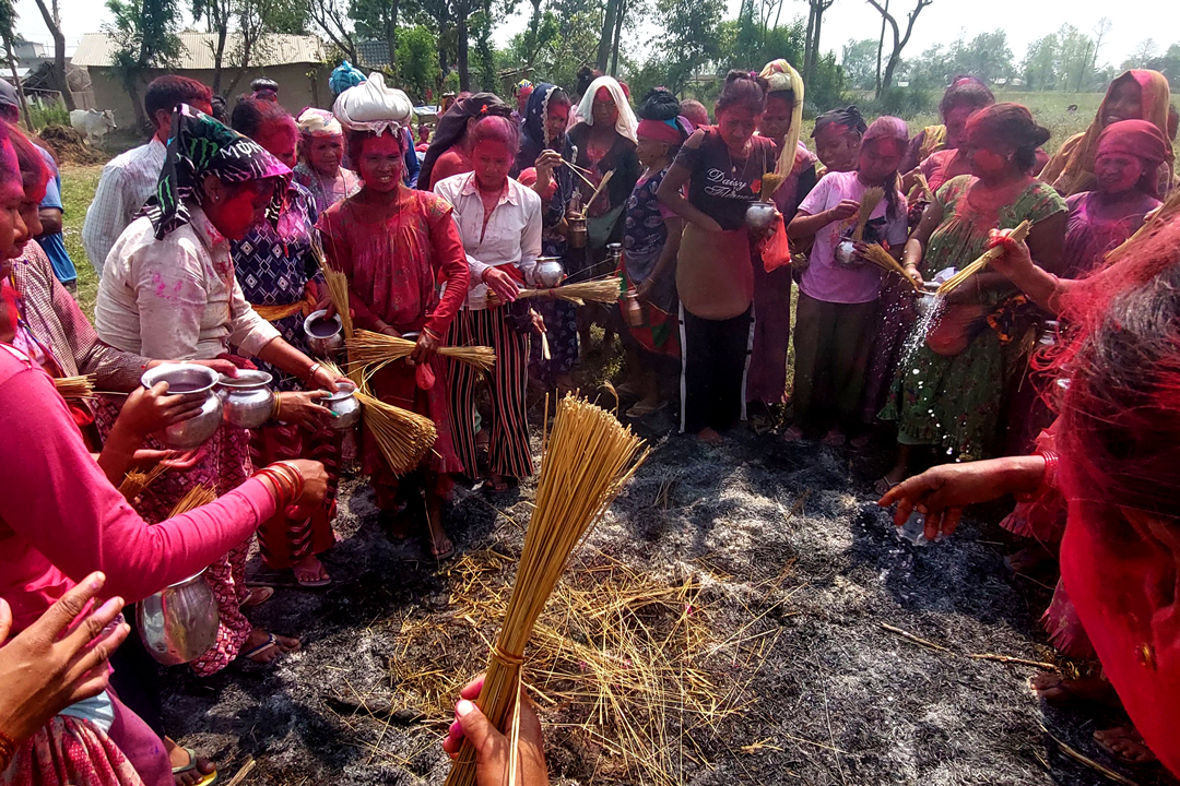 Tharu communities in Rajapur celebrate Holika Parva; Families welcome new fire into the hearth (Photo Feature)