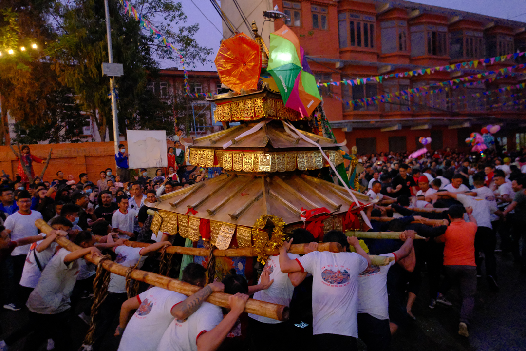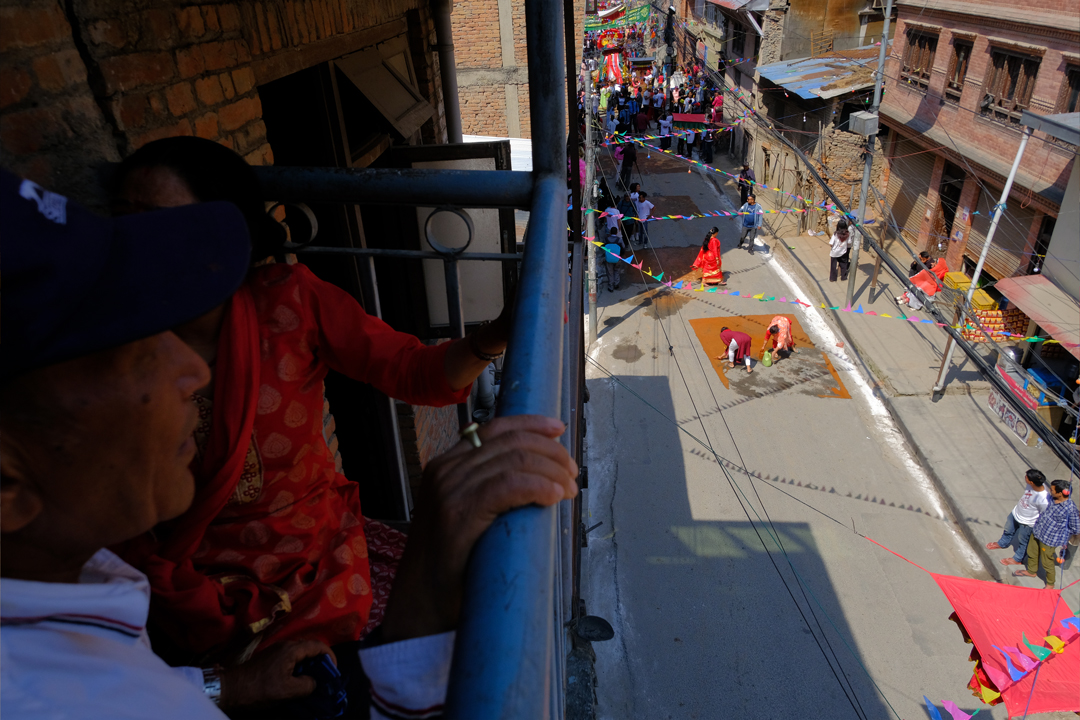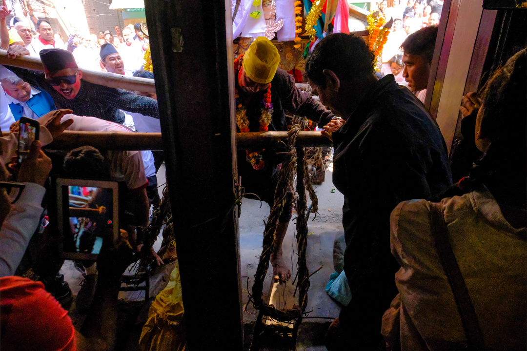 To create this feeling of harmony, it is necessary for the festival to be embraced by every caste and family. Therefore, during a Jatra, each family is given a specific role in the festival. For instance, Karma Acharya’s family was given the responsibility of looking after the tantric manifestations, while the neighboring Dangol family was tasked with preparing rice sculptures two days before the searching festival. “Every family has been assigned a role in the festival, which brings them together and fosters a sense of community. Therefore, taking time to participate in Jatra is a way of getting closer to one’s neighbors and community members,” Karma Acharya said.